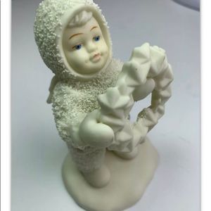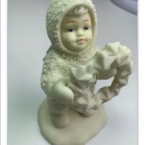Dept 56 one figurines. The figurine is a winter tales of the snowbabies "I made this just for you", figurine holding wreath. In good condition, no chips cracks or crazing. No box. Figurine measure 4" tall.
