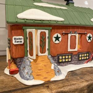 This sweet barn has so many cute details! I especially love the doors that are slightly ajar and the sliding barn window that lets the light through. It is the Bieler family farm! There are other accessories available such as animals and hay hatchers that would work perfect with this building.