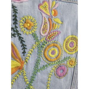 Department of Peace Floral Embroidered Denim Vest Size Medium
