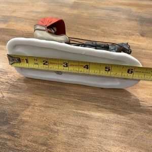 Great condition, has been stored in and comes with original box. Has one spot of missing paint on front of sleigh as shown. Possibly a manufacturing defect as there is no damage.