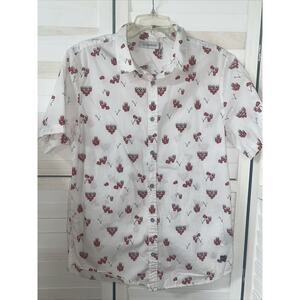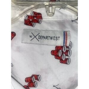 Departwest Beer Pong Short Sleeve Button Up Shirt White Red Men's Size Medium