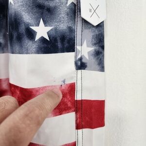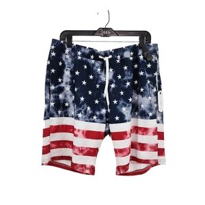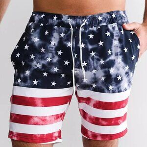 Men's Flag Stretch Swim Trunks from Departwest in Red/Navy.