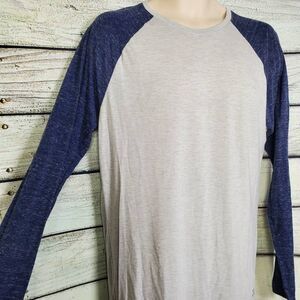 Departwest Men’s L Gray Blue Raglan Baseball Tee Long Sleeve Casual