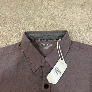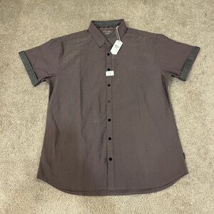 New with tags! Material has good stretch to it! Cool purple color! Button down shirt with a collar! Sleeves can be worn rolled or unrolled! Perfect for work or a night out! Offers always welcome!