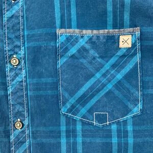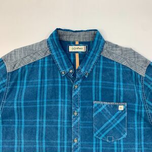 Departwest Shirt Mens XL Blue Plaid Short Sleeve Cotton Button Down Curved Hem