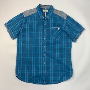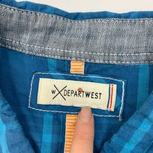 DEPARTWEST SHIRT MENS XL BLUE PLAID SHORT SLEEVE COTTON BUTTON DOWN CURVED HEM