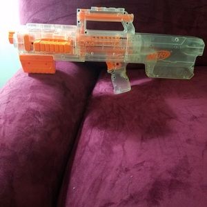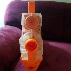This slick, clear blaster got everything you need to fight hard and win the battle against your friends. It even has an inferred red beam, so you can put a dot on your opponent.