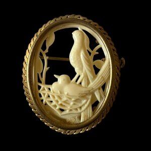 Depose France Bird Nest Celluloid Brooch Pin Gold Plated