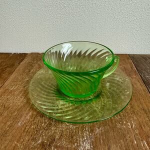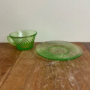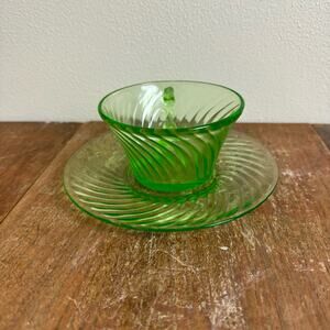 Depression Era Green Vaseline Uranium Swirl saucer and tea cup set