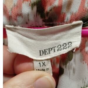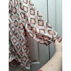 Dept 222 Women's Plus Size 1X Green Pink Ikat Boho 3/4 Sleeves Split Neck Top