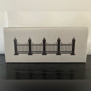 In excellent condition, never used. Hand painted metal. 9 piece set. Wrought iron fence extensions. Village accessory.