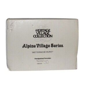 Department 56 Alpine Village Metterniche Wurst 56190 Sausage Butcher Shop.Retired 1997. Mfg 1997-1997. Light cord included. Original box has tears and rough edges. Item is in great condition with no chips, cracks or repairs made, see photos.