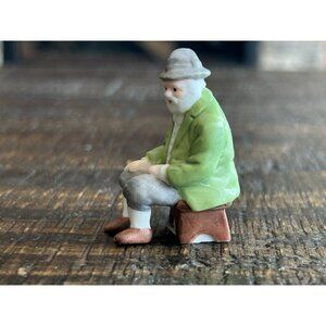 This old man figurine is the perfect addition to your Christmas village. He sits there, probably pondering why he wore such a bright green jacket. The expression on his face suggests he's either contemplating life's mysteries or just waiting for a bus that never arrives.