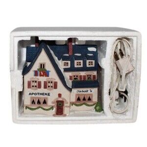 Department 56 Alpine Village Series Apotek And Tabak (Pharmacy & Tobacco). Vintage 1986-1997. Retired. Light cord included. Original box (fair condition). Item is in great condition with no chips, cracks or repairs made, see photos.