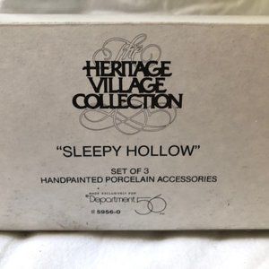 This Department 56 Dickens' Village Sleepy Hollow Characters set (#5956-0) was issued in 1990 and was retired in 1992. This 3 piece set is in perfect condition, although its packaging is a little worn from storage. I have several other pieces...ask if you are looking for something specific!
