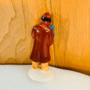 Charming Department 56 “Father with Child” hand-painted ceramic village figurine featuring a man in a red-striped scarf holding a bundled child. A heartwarming addition to any Dept 56 Christmas Village or winter display, evoking classic holiday warmth and nostalgia.
