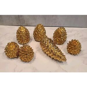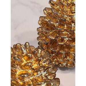 Dept 56 Gold Tone Heavy Metal Pinecone Décor Holiday Season Set of 3 Excellent Used Condition | Please refer to the photos for the condition | Weight before packaging 13.5 oz.