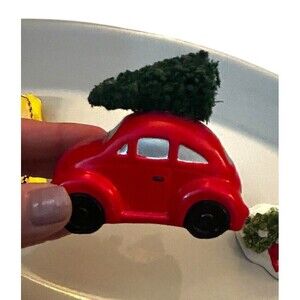 This Dept 56 lot includes three pieces: The Original Snow Village Cat, VW Bug Car With Tree, and Yellow Taxi. Each piece is hand-painted with a glossy finish and features intricate details, making them perfect for any collector or for adding to your own Christmas village. The items are in their original packaging and are suitable for indoor use.