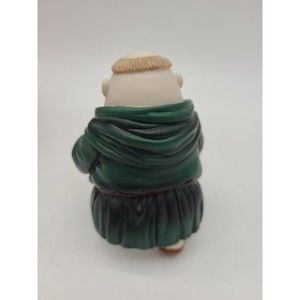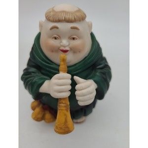 4" tall porcelain figurine of monk blowing a horn to spread holiday cheer
