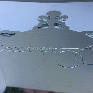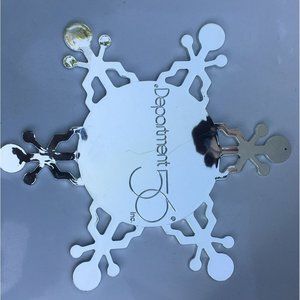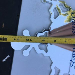 Department 56 Original Snow Village Silver Color Snowflake sign or ornament, Has a mirror design and appears pretty rare, and I cannot find when it was made, part of our mothers village accessories but she has had it since the early 90s.
