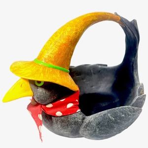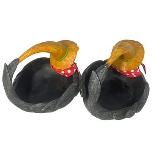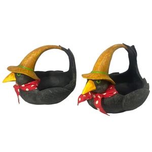 Dept 56 NEW Crow Halloween Fall Decor Black Bird Red Bandana Bowl 2 Piece Set.