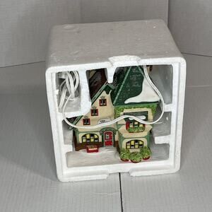 This is in perfect condition. It comes in the original box with the light and cord. The light works and has an on/off dial on the the cord to turn lights on and off without unplugging it. This is a beautiful collectible part of a wonderful Christmas village set up. This will come in the original box to your home. MINT CONDITION