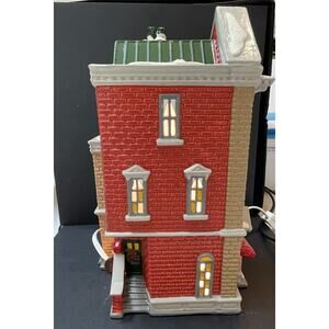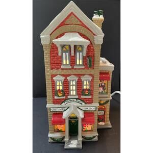 Add a charming touch to your holiday decor with the Department 56 Original Snow Village Finklea's Finery Costume Shop. This delightful piece, complete with its original box and light, is a must-have for any enthusiast of the festive season or collector of Christmas village sets. The meticulously crafted shop comes from the beloved Snow Village collection, showcasing the quality and attention to detail that Department 56 is known for.