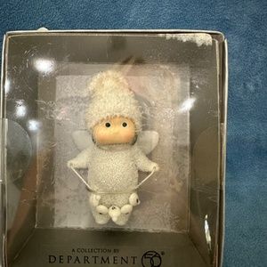 Dept. 56, 2010 Snow Babies, Angel is holding a string of ornaments that spell “ PEACE”. 3.5” tall! The hat is cloth and body is bisque porcelain. Never used, never out of the box.