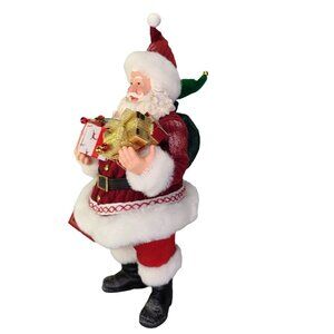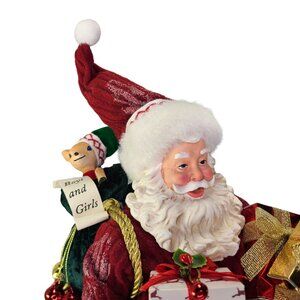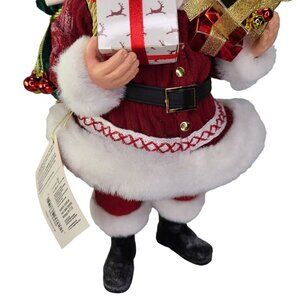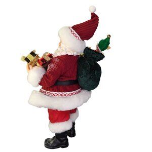 Incredible details. Baby reindeer riding in Santa's green velvet pack. Jingle bells that tinkle on Santa's pack and the presents he is holding. Lovely coat with stitched trim. Tags still attached.
