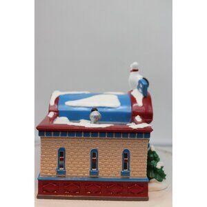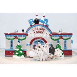 This charming Dept 56 Snow Village Bowling Alley piece adds a playful touch to any holiday display. Expertly crafted, it's a timeless addition to your miniature village collection.