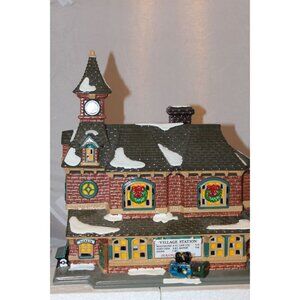 This Department 56 Snow Village - Village Station is a charming, hand-painted collectible that brings a touch of winter magic to any display.