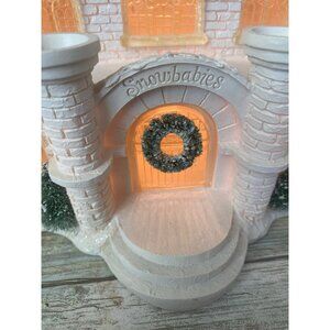 Bring holiday magic to your display with this Department 56 Snowbabies Frosty Frolic Ice Palace. Introduced in 1998 and retired in 2001, this collectible castle features frosted stone walls, glowing golden windows, festive greenery, and a front wreath.