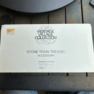 Village accessories enhance the unique charm of the lighted pieces in any display. Designed and sized to coordinate with the Department 56 Villages, these accessories bring a lively feeling of activity to any display. The Stone Train Tressel is in good condition for being over 30 years old and has beautiful artwork, colors and design, each piece is properly marked on the bottom of the piece, includes original box and sleeve (sleeve has wear).
