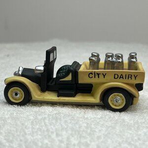 Department 56 Transport - Dairy Truck, Christmas in the City Accessory from 1988. Features a yellow and black truck with milk containers in the back. Size 3 ½" long. Loose figurine only - This is not the complete set and includes only 1 figurine from the set. No box is included, only the figurine.