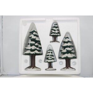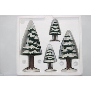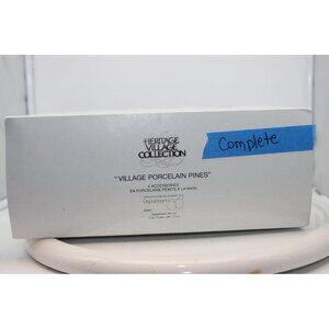 This set of 4 Dept 56 Village Accessories, Village Porcelain Pines, by Department 56, adds a charming, festive touch to any miniature village display. Crafted with meticulous detail, these trees bring a touch of winter wonder to your decor.
