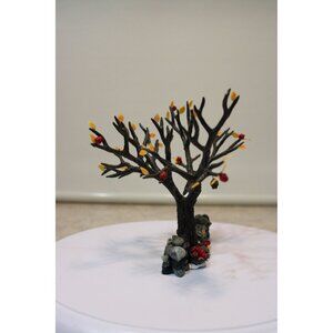 Enhance your holiday village display with this charming Dept 56 accessory featuring a fieldstone wall adorned with a realistic apple tree, perfect for adding a touch of nature to your scene.