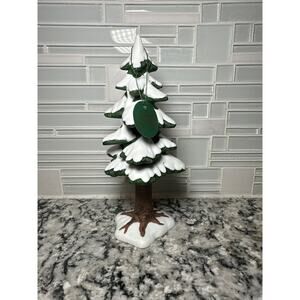 This beautiful Dept 56 Village Porcelain Pine Large piece is a must-have for any Christmas Village collector. The intricate design and attention to detail make it a true work of art. The piece comes in a box, making it a perfect gift for any occasion.