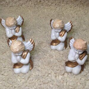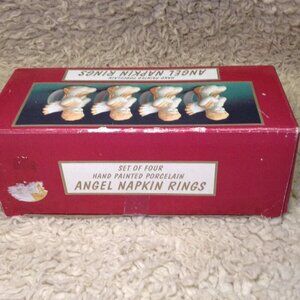 Dept 7, Porcelain Angel Napkin Holders; Christmas, Celebration, Traditional chic. 4" height, beautifully painted; Quality Porcelain, Quiet Traditional. No visible signs of wear; GREAT condition, no cracks, no crazing, bright colors.