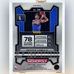 2023-24 Panini Prizm Monopoly Silver #24 Dereck Lively II RC