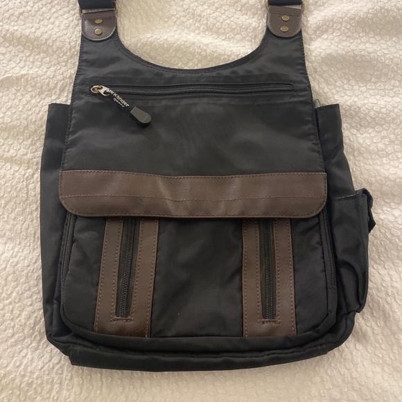Derek Alexander Crossbody Nylon Bag Black with Brown Trim