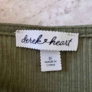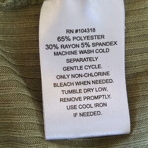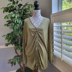 Olive green, ruched, ribbed, v-neck sweater. Ruching has drawstring on the bottom front. Very soft. Great condition.
