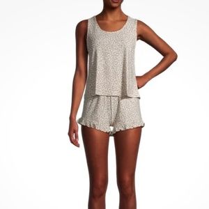 2 PC, Hearts Animal Crystal Print, Polyester Spandex, Sleep Shorts, Ruffles, Size Large, NEW, Firm.