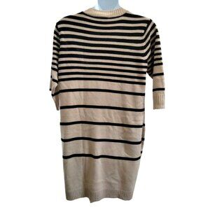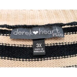 Derek Heart Black Beige Striped Round Neck 3/4 Sleeves Sweater Dress Plus Size 3
