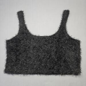 Derek Heart Black Fuzzy Crop Top Tank Halter Stretch Scoop Neck Women's Size L