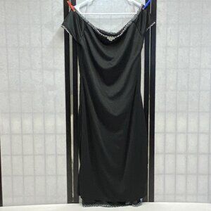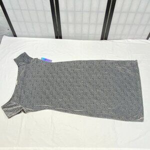 Derek Heart Black Silver Shimmery Greek Key Shift Dress Boat Neck Cap Sleeve 1X