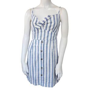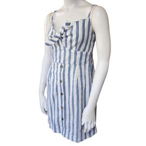 Derek Heart blue and white striped knot front dress with spaghetti straps and faux buttons down the front.