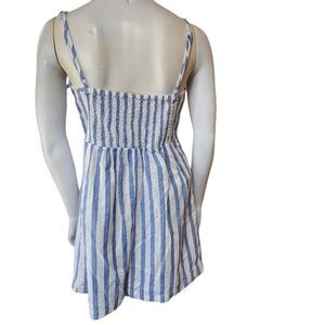 Derek Heart Blue & White Striped Spaghetti Strap Knot Front Dress (M)