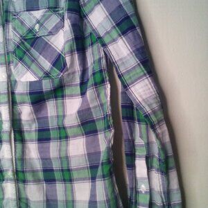 Derek Heart Button Front Shirt Women S Long Sleeve Roll Tab Pockets Plaid Green