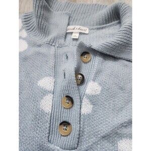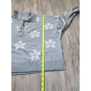 Derek Heart Crop Collared Sweater Blue White Flower 1/4 Button Relaxed Plus 2X