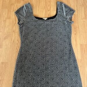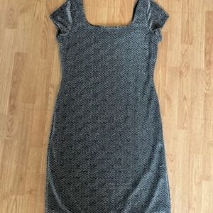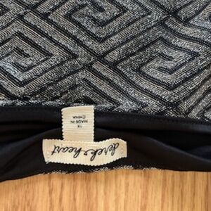 The Derek Heart Dress is a stunning silver and black bodycon dress in size 1X, designed for plus-sized women. This knee-length dress is perfect for special occasions or nights out, with its eye-catching sparkly silver color and flattering silhouette. Made by the popular brand Derek Heart, this dress is sure to make a statement and turn heads wherever you go.